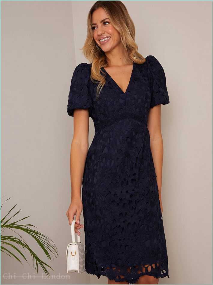 Additional Benefits: I have been designed with special occasions in mind, with a premium crochet in a navy idea hue. My v-neckline and puff sleeves are ultra flattering and feminine, a-line skirt adds some extra playfulness. Pair me with your favourite accessories to complete your look.