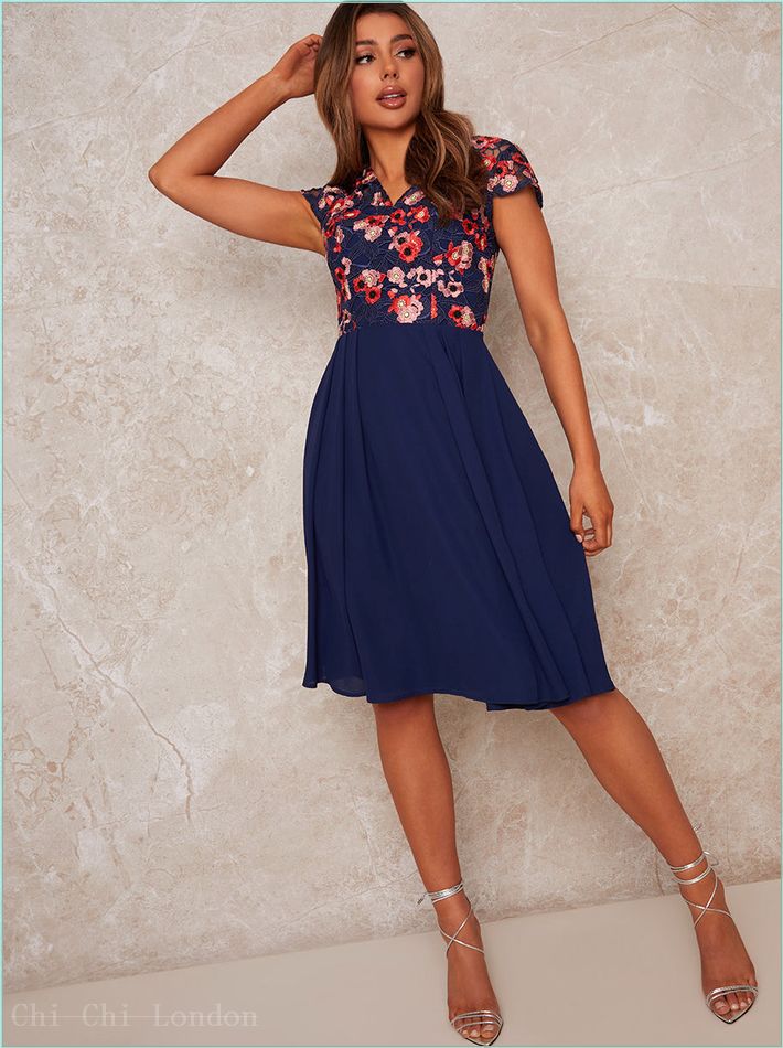 Update your florals in this cap sleeve pleated dress, featuring a crochet bodice you'll be sure to turn heads this season.